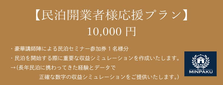 民泊開業者様応援プラン(購入期限:2月10日 10時まで)