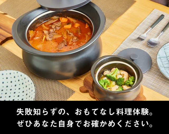 シチューや肉じゃが、おでん、アクアパッツアといったメインディッシュはもちろん、パエリアやお粥、さらにはアヒージョやバーニャカウダといった「もう一品」の料理まで、さまざまな本格煮炊き料理を、誰でも簡単に時短で作ることが可能となりました。