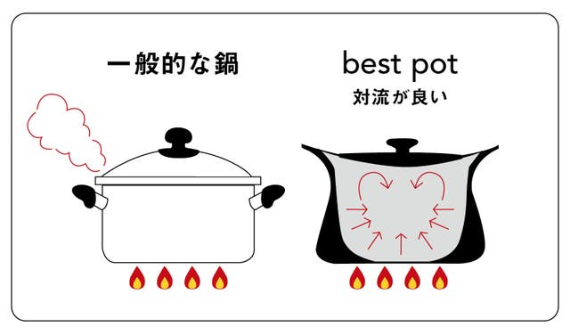 また、「best pot.」の蓋には、しっかりした重量のある鉄の「鋳物」を採用。