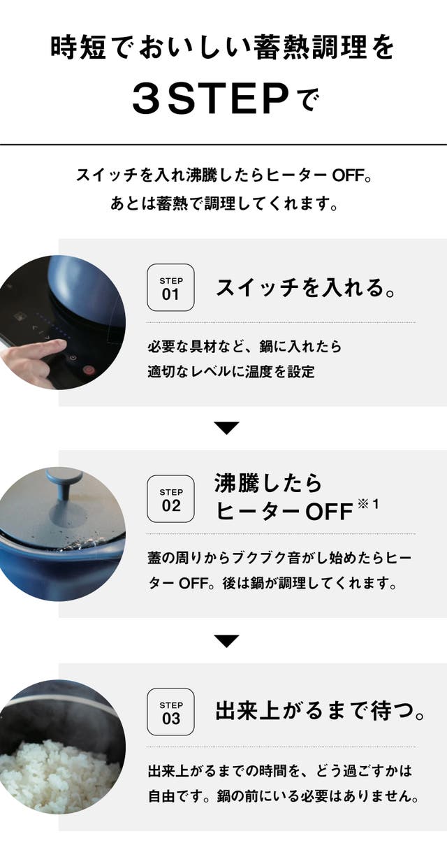 しっかりと密閉された蓄熱調理は、鍋全体が熱を保持する事で調理を行うので、毎日のお料理の手間を減らすことがでるのはもちろん、電気代も抑えられて環境に優しく調理ができるのです。