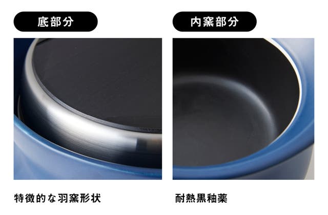 そんな萬古焼の土鍋のポテンシャルをさらに引き出したのが、耐熱黒釉薬です。内釜にそれを使用することで、遠赤外線を高いレベルで安定的に放射しつづけられるようになったのです。