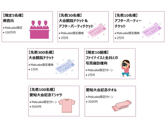 本来はスポンサーとして入って頂く企業様や、著名人などに限定した審査員枠ですが、特別に一般枠を5枠設けました。この権利では、当日会場の審査員席にご着席いただき、ファイナりストの審査を行っていただき、愛知県のグランプリを決めるための1票を投じていただきます。