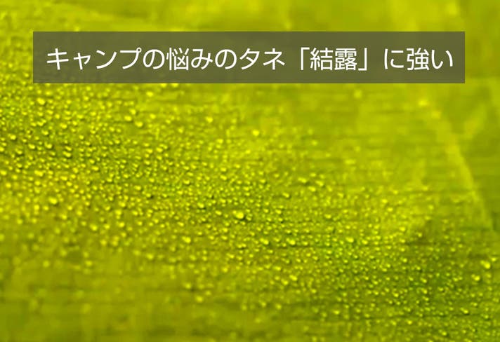 ※ポリコットン生地は通気性が高いため結露は発生しにくい一方、ポリエステル100%に比べると防水性が劣ります。雨の日は付属のフライシートを装着することで、快適さを保ちつつ雨の侵入も防ぐことができます。