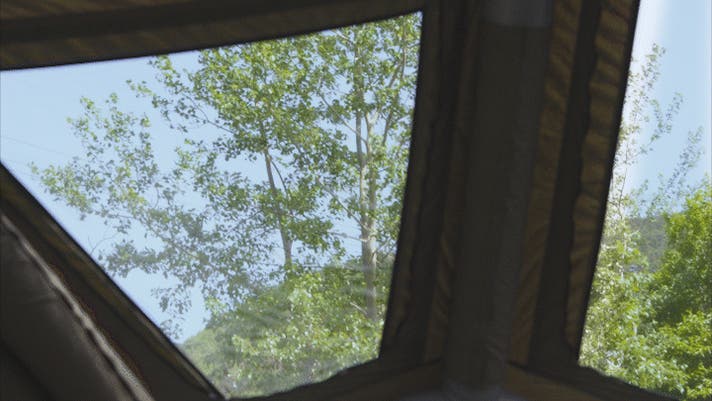 前後のドアはファスナーでフルオープン可能で、カーテンのように両側に巻き取ってすっきり収納可能。開放すれば、風通しも抜群で広々とした空間に早変わりします