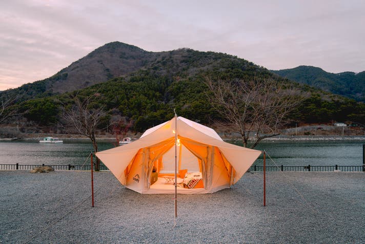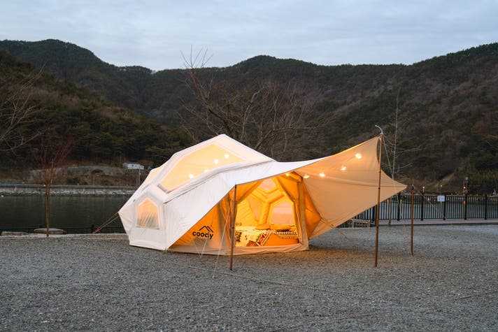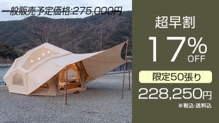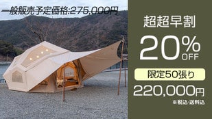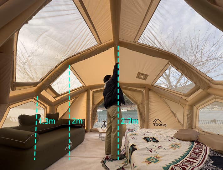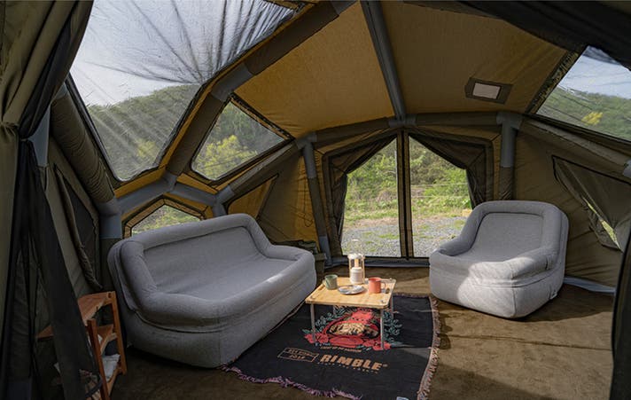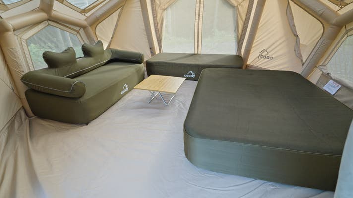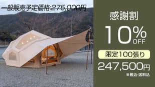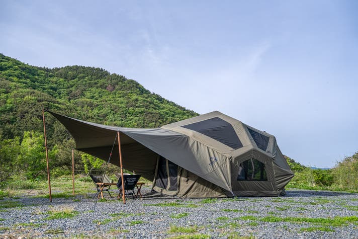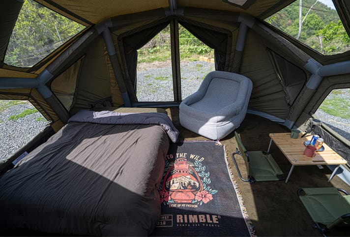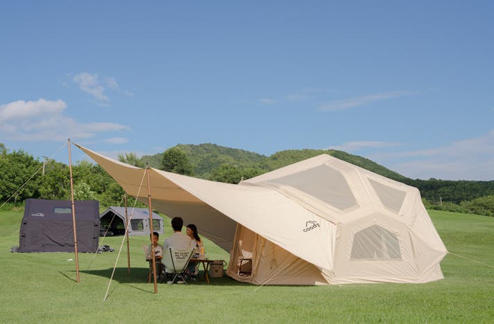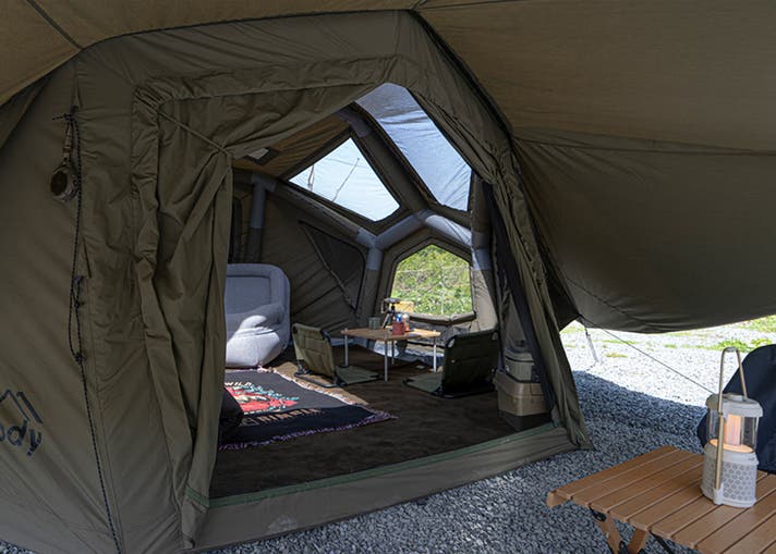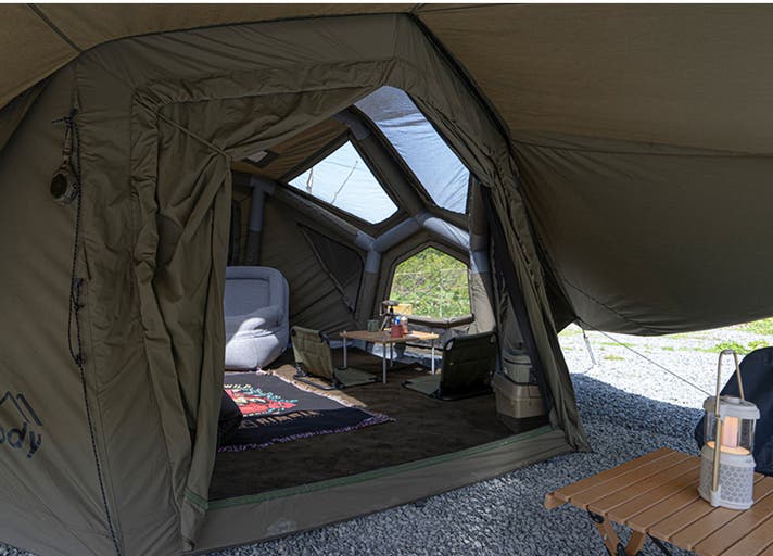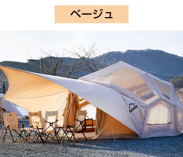 - 広げて空気をいれるだけ!面倒な設営なしのグランピングスタイルのエアテント、日本国内サポート付き