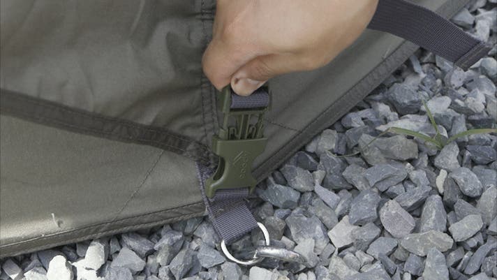 一般的にタープは1人で設営するのが大変ですが、coodyエアテントBESTONAなら、片側をファスナーでテントに接続し、もう片側をポールで支えるだけ。1人でも簡単に設営できます。