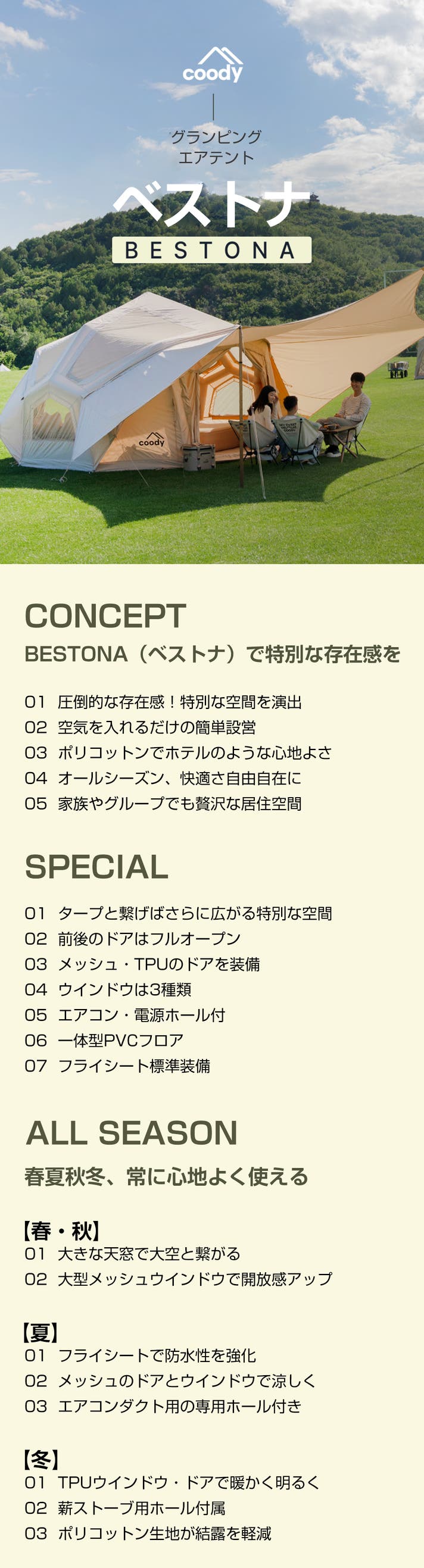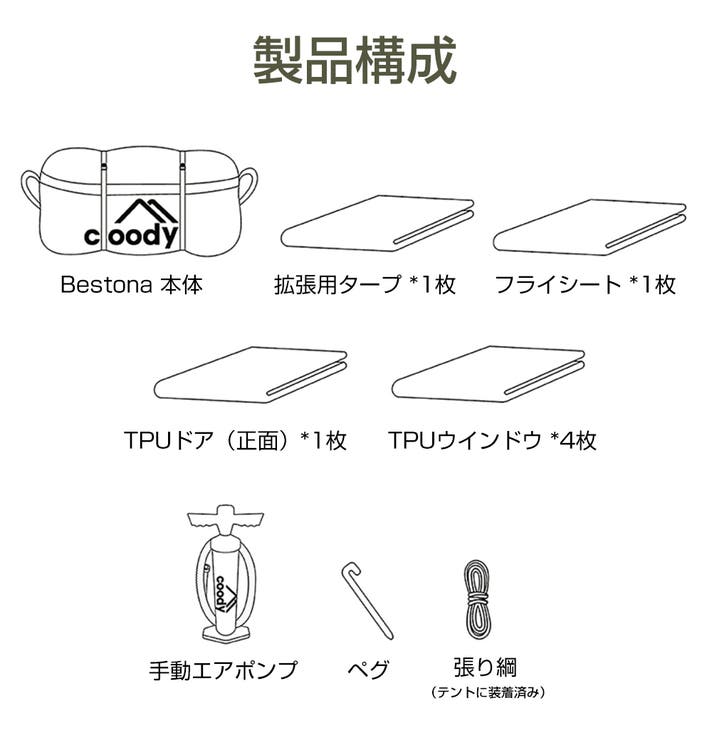 【追加感謝割】coodyエアテントBESTONA+快適キャンプセット