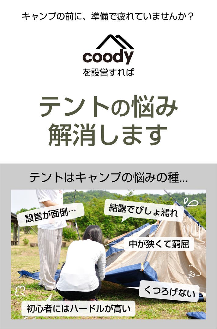 - 人気テントブランドcoodyの新作ベストナが日本初登場、この存在感でキャンプ場での注目度抜群