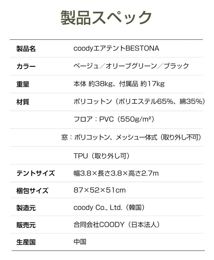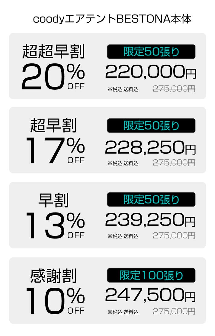 【超早割】17%OFF coodyエアテントBESTONA×1