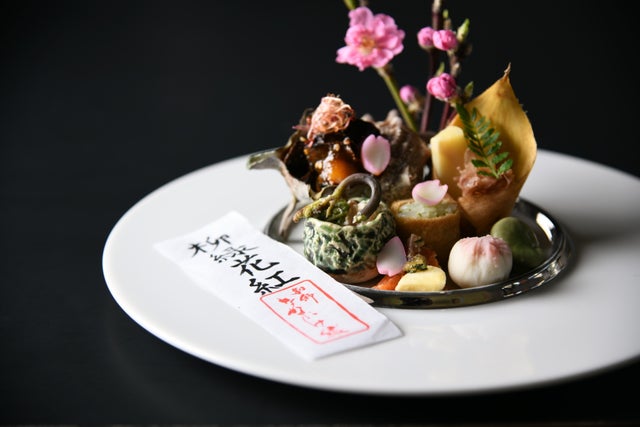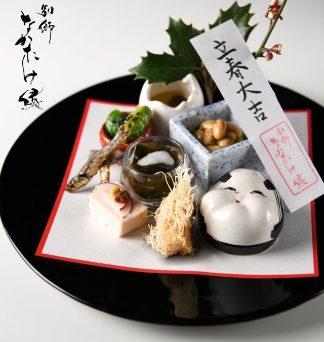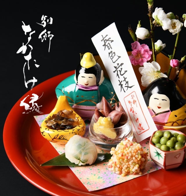3月の前菜には雛人形の器に酒の肴を盛りつけました。