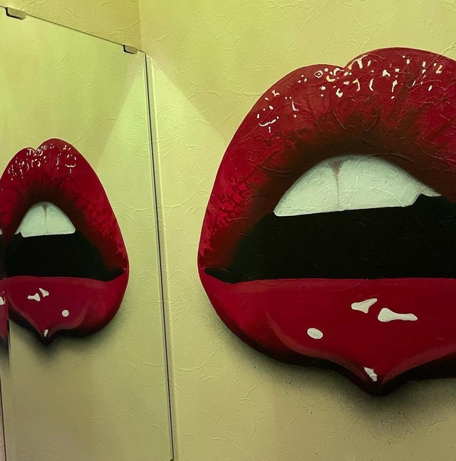 お手洗いにもCazulの代表作『くちびる』がございます。
