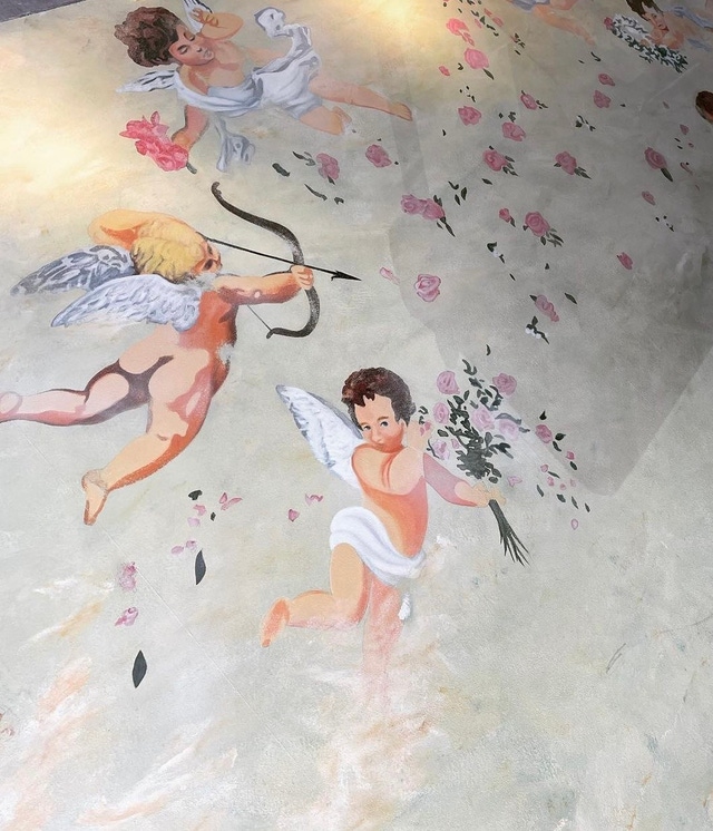 カウンターの壁画はCazulに描いて頂いた、天使たち。