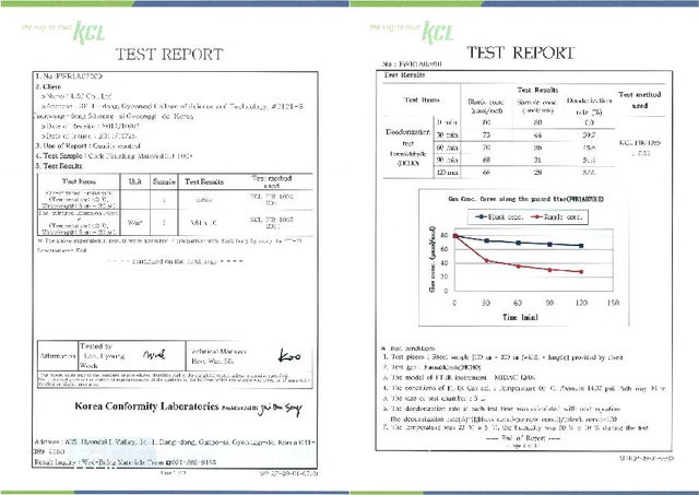 コルクレザーの消臭、抗菌リポートです。