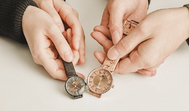 さりげなく個性を主張するコルクレザーの腕時計