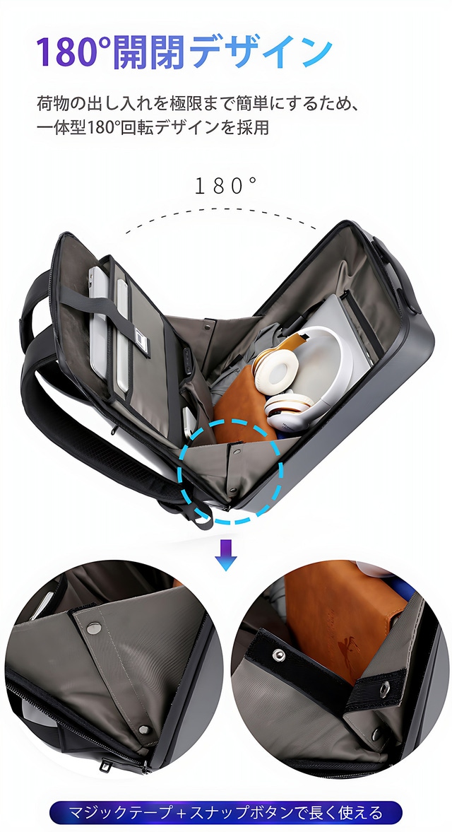 - 180℃開閉デザイン。防水素材使用&頑丈さもバッチリ。