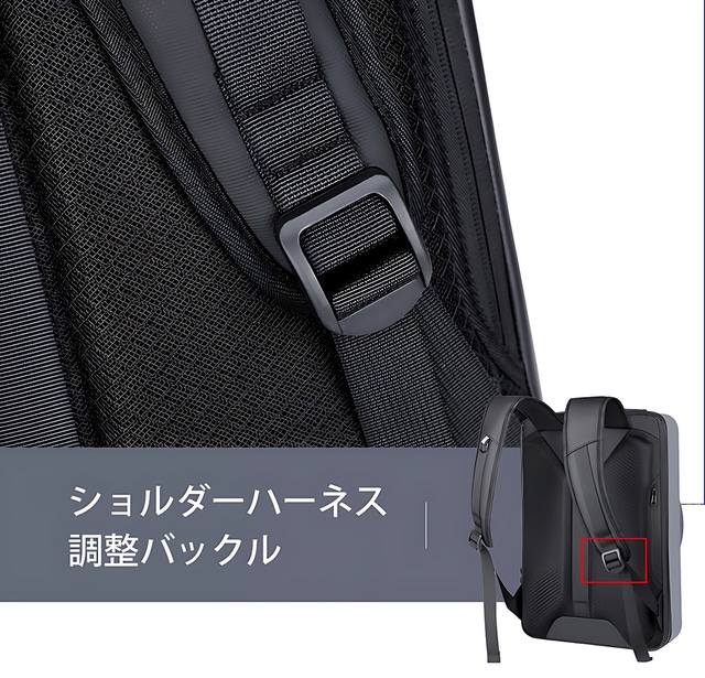 また、調整バックルは、ショルダーハーネスを自分に合ったベストな長さに調整でき、肩への圧力を和らげます。