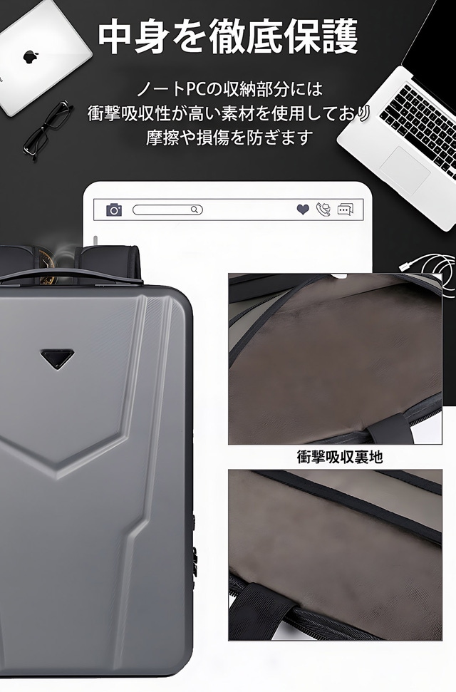 優れた耐衝撃性素材によりあなたの大切な荷物に傷をつけません。