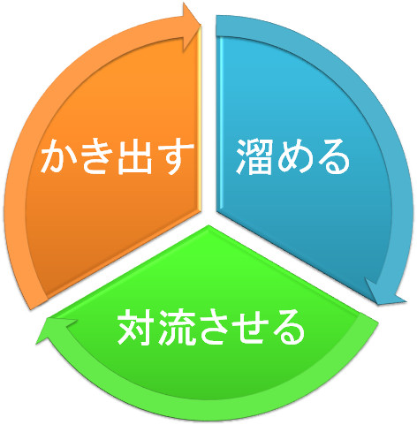 シャワーから出たお湯は、溜まったお湯を押し出すようにカップ内で勢い良く対流します。対流で発生した細かい泡と共にお湯が地肌の隅々まで行き渡り、しっかりと洗い流します。