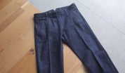 体型を意識したやや細めのシルエットでありながら、型崩れを意識せず経年変化を楽しめるよう、敢えてストレッチは少なめに。全ての工程を国内で行う。