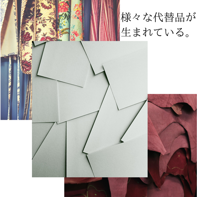 そういった課題を解決するために現在、アパレル業界では、パイナップルレザー(パイナップルの皮でできたレザーの様なもの)や、リサイクルレザーを用いたエコレザー、その他様々なレザーに似た質感の代替生地が市場に出てきています。