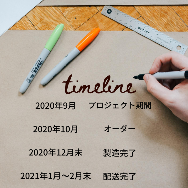※余裕をもったスケジュールとしていますが、疫病やその他何らかの関与できない事象によって製造が大幅に遅れることがございます。その際の返金は致しません。ご了承ください。