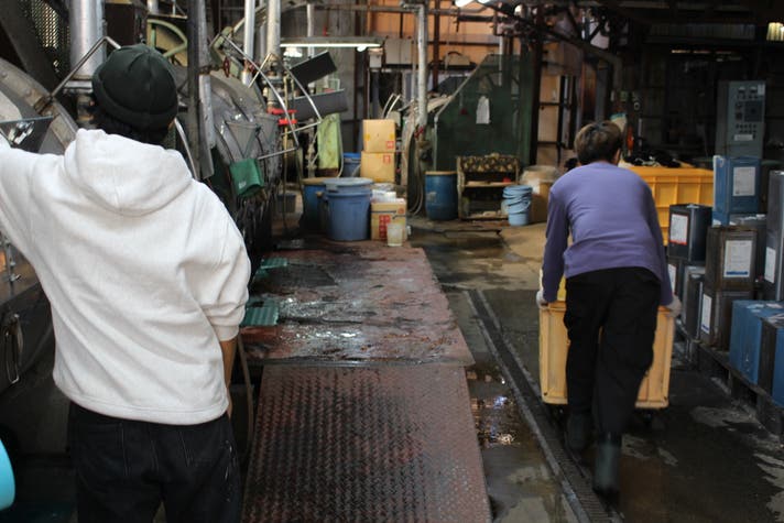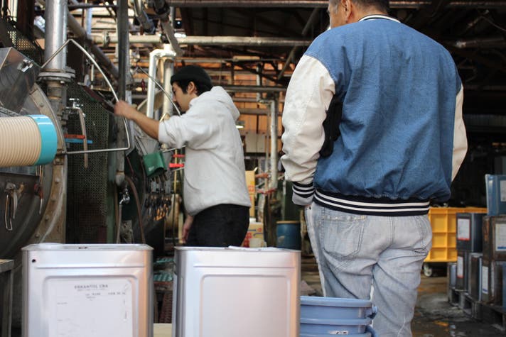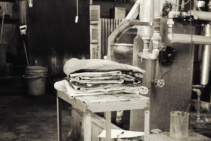 私たちはその洗いを担い、生地の風合いや色、表情を整えています。