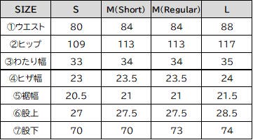 M(Short):165~170㎝くらいの方(標準体型向け)