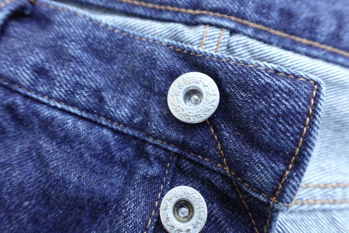 デニムのボタンには歴史ある月桂樹ボタンを使用。