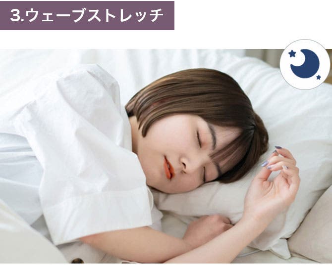 仕事やスマホの使用で酷使した目元やその周りを、やさしいウェーブストレッチで心地よくケア。