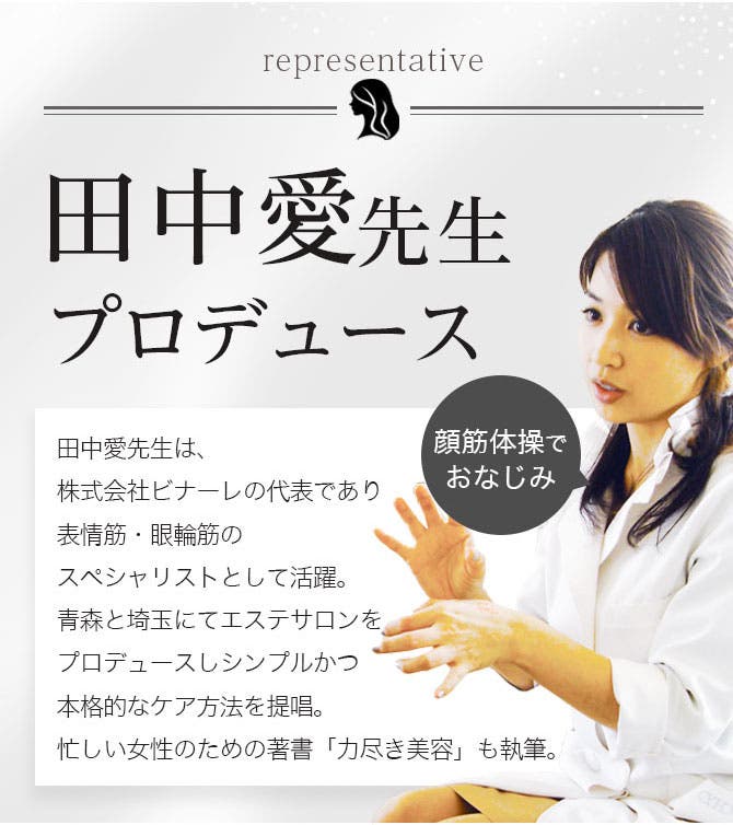 開発した田中愛先生は3児の母として多忙な日々を送る中、忙しい女性たちに寄り添った美容方法を提案し、自身の美しさでもその信頼を証明し続けています。
