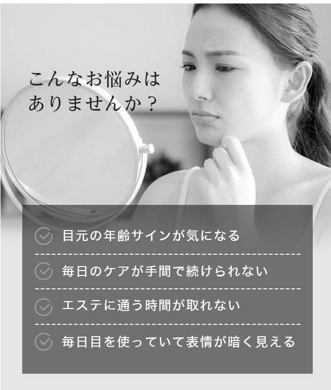 普段エステや目元ケアに行く時間がない、という忙しい方にも、目元ケア、フェイシャルケアを生活に取り入れていただけます。