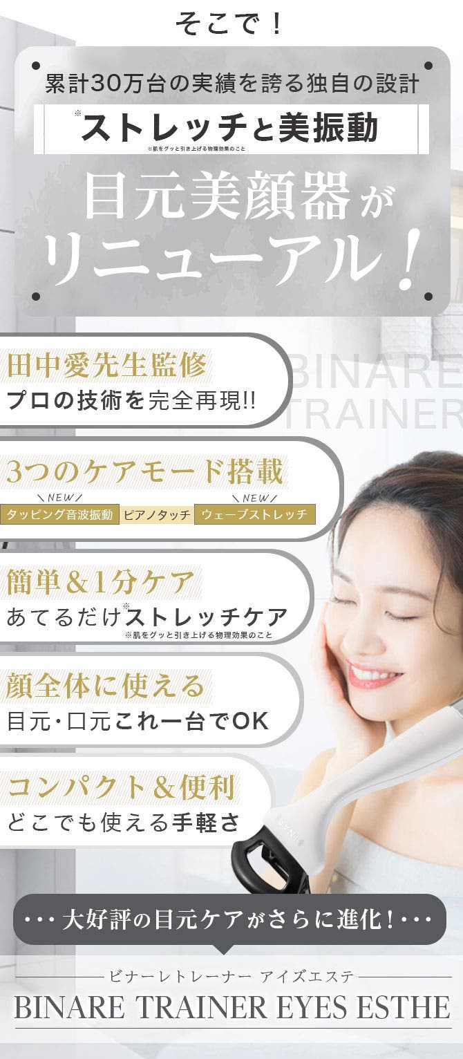 ビナーレトレーナー アイズエステは、現代人が酷使する目元をケアする、「セルフエステ」を実現する商品です。