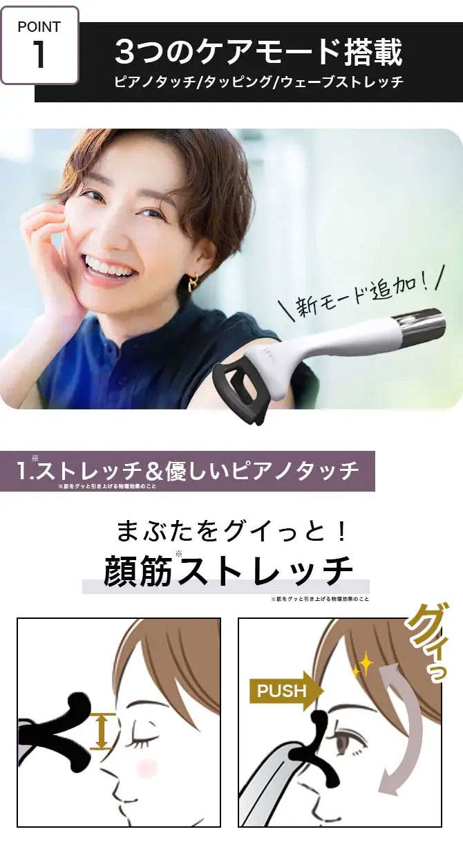 繊細な振動が筋肉をやさしく刺激し、目元だけでなくフェイスラインや口元などの「顔筋」にもアプローチ。