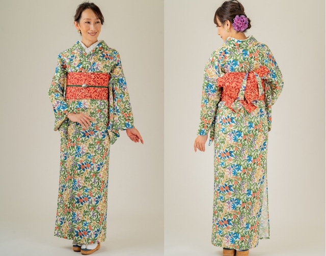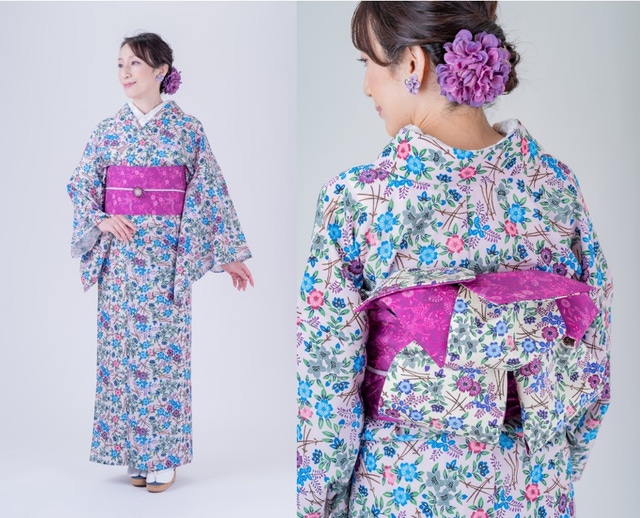 - 着物は吸水速乾素材で家で洗えてシワになりにくい。単衣と夏着物として5~9月着用できる優れモノ。