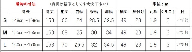 ※お仕立てはS・M・Lからお選びいただけ、単衣・バチ衿仕立てとなります。