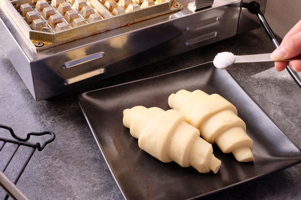 「クロワッサンワッフル」とは、クロワッサンをワッフルメーカーでギュッと焼いたスイーツ。