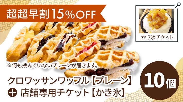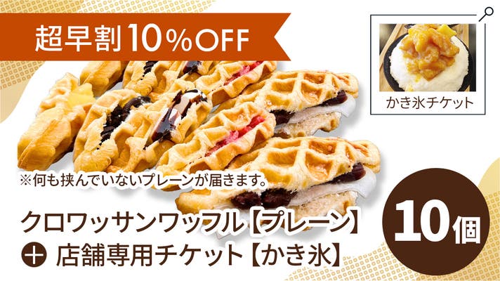 【超超早割15%OFF】クロワッフル:プレーン10個+店舗専用チケット【かき氷】