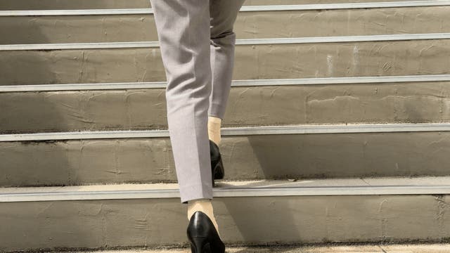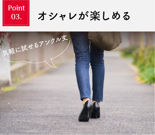 見た目は普通のアンクル丈ストッキング。靴ズレ予防アイテムのような不自然さはなく、素肌に近い色を採用。仕事時や普段使いでも使用できます。
