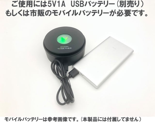 A1:内蔵バッテリーはございません、充電も出来ません、ご使用の際は5V1A USBアダプター(別売り)もしくは市販のモバイルバッテリー(別売り)を付属のケーブルに接続しご使用ください。