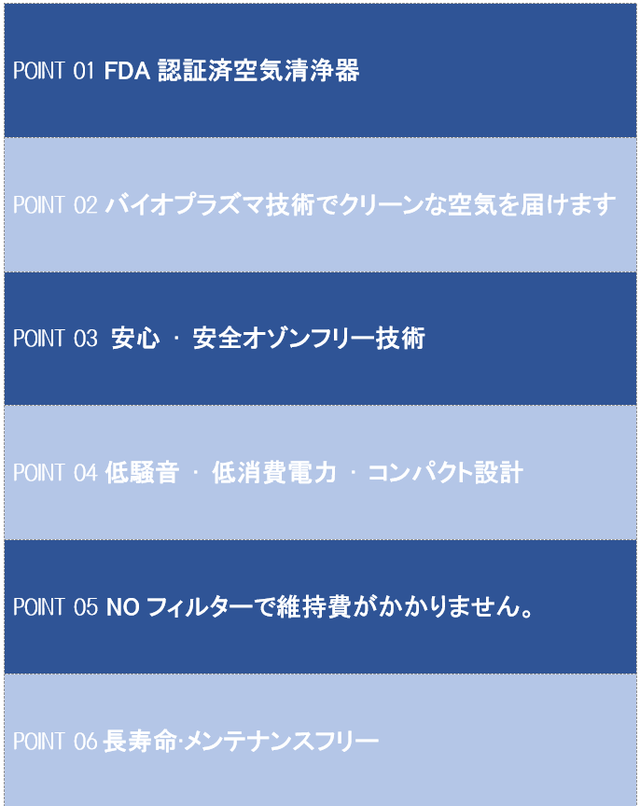 - 1秒間に約2億個ものプラス、マイナスイオンを排出、オゾンフリー。