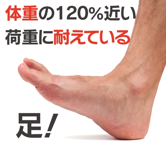 足は私たちの体で占める割合は2%に過ぎませんが、体重の120%に近い荷重に耐えています。