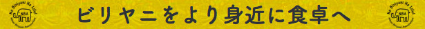 この美味しさの感動をいろんな方々に知ってほしい、との思いから、約7年前から活動を始めたのが私たち 「日本ビリヤニ協会(Nihon Biriyani Association)」です。NBAには、バスケットボールや日本バス協会のほかに、ビリヤニもありますこと今後、お見知りおきください(笑)。