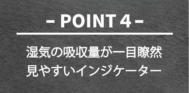 【BISCUIT STONE】がどれだけ湿気を吸収しているかはサイドにあるウェット&ドライインジケータの色の変化で一目瞭然。