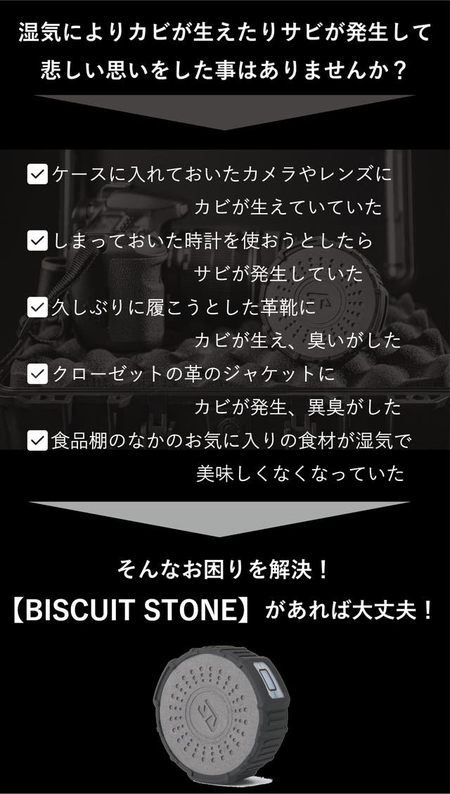 皆さんにとって大切なモノを湿気から守るだけでなく、見た目も満足できる。そんな【BISCUIT STONE】をより多くの人に知ってもらいたいと思い、今回プロジェクトを立ち上げました。