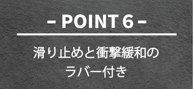 バッグに入れた時に他の荷物とぶつかって傷ついたり、落とした時に割れたりしないように、衝撃吸収力に優れたTPV(動的架橋型熱可塑性エラストマー)ゴムのカバーが付いています。