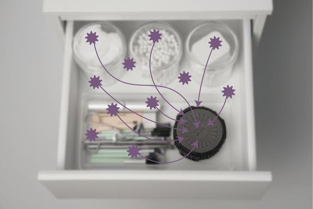 - 手のひらサイズで30Lの空間を強力除湿。珪藻土の8倍もの吸湿力&約30日間連続使用が可能。