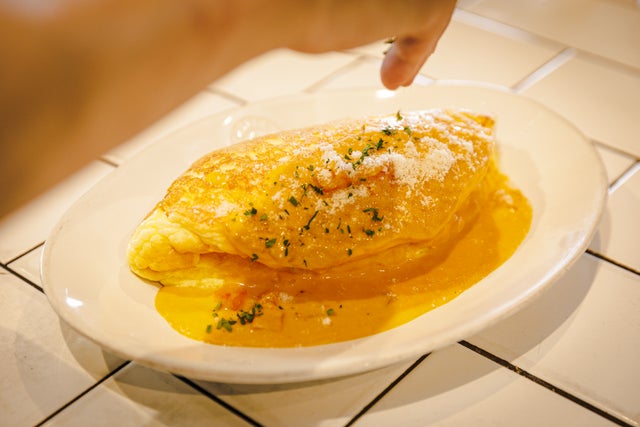口のなかで卵の風味とソースが溶け合い、なんとも言えないおいしさに包まれます。