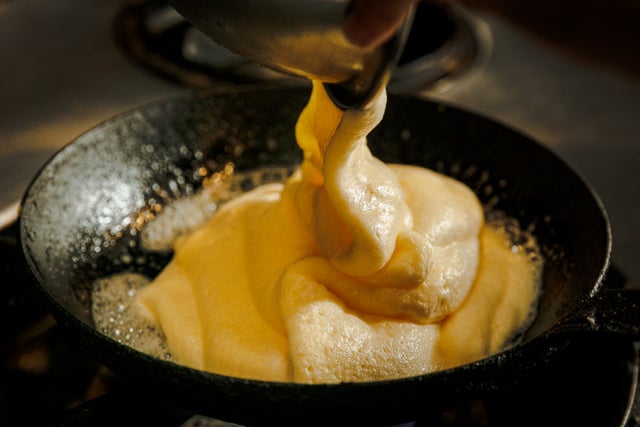 もともと世界遺産のモンサンミッシェル名物として知られるフワフワのスフレオムレツをベースに、シェフが独自のアレンジをきかせてレシピを開発。