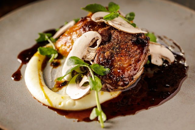 岩手県花巻市 石黒農場よりホロホロ鳥 モモ肉のソテーとフォアグラのパイ包み トリュフマデラワインソース