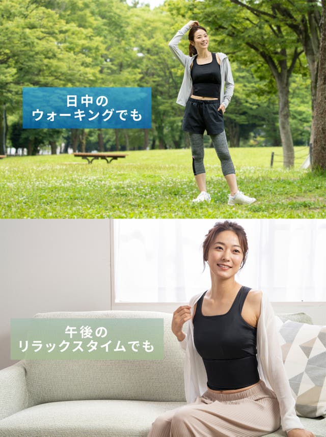 - 日常生活をエクササイズに。巻くだけで体幹がサポートされ、姿勢補整&シェイプを同時に実現。